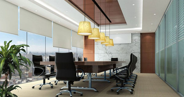 在办公室的窗帘种类中还有布艺窗帘,布艺窗帘多用在会议室,具有厚重感窗帘种类会使得整个会议室显得庄重,以及达到有效遮光遮阳,考虑到会议室的特殊性,其遮光性也为使用投影仪时起到了十分重要的作用。
